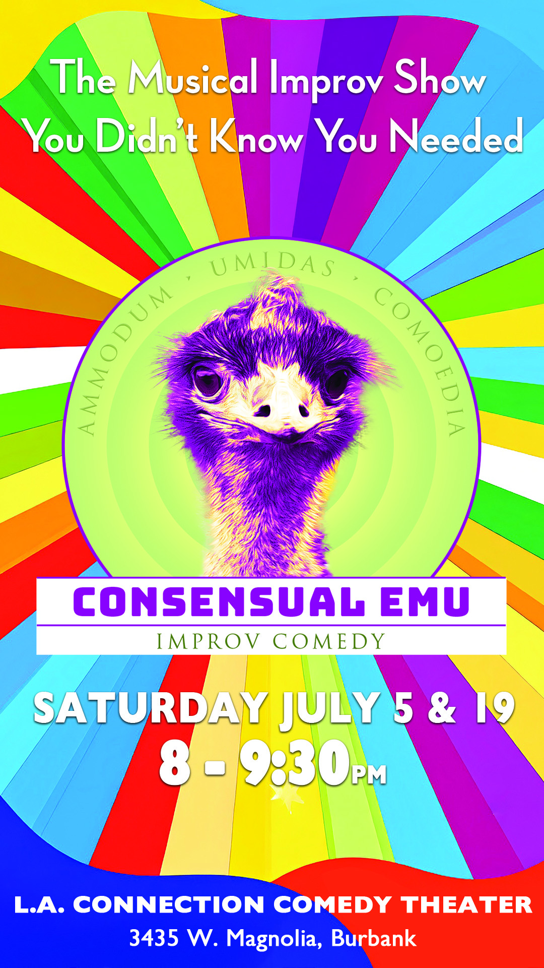 Consensual Emu is an award-winning Burbank-based short-form improv troupe known for quick wit, audience-driven scenes, and a completely improvised musical finale. Our shows blend comedy, creativity, and chaos into a … read more » |