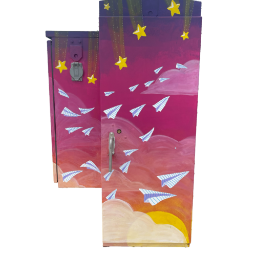 Box Description: A flock of happy and exuberant paper planes SOAR through a pink and orange sunset with shooting stars lighting up the sky.